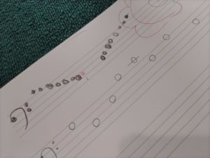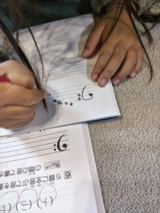 弾くだけじゃなく、書くことで理解も深まります(年中さんのノートをお借りしています)